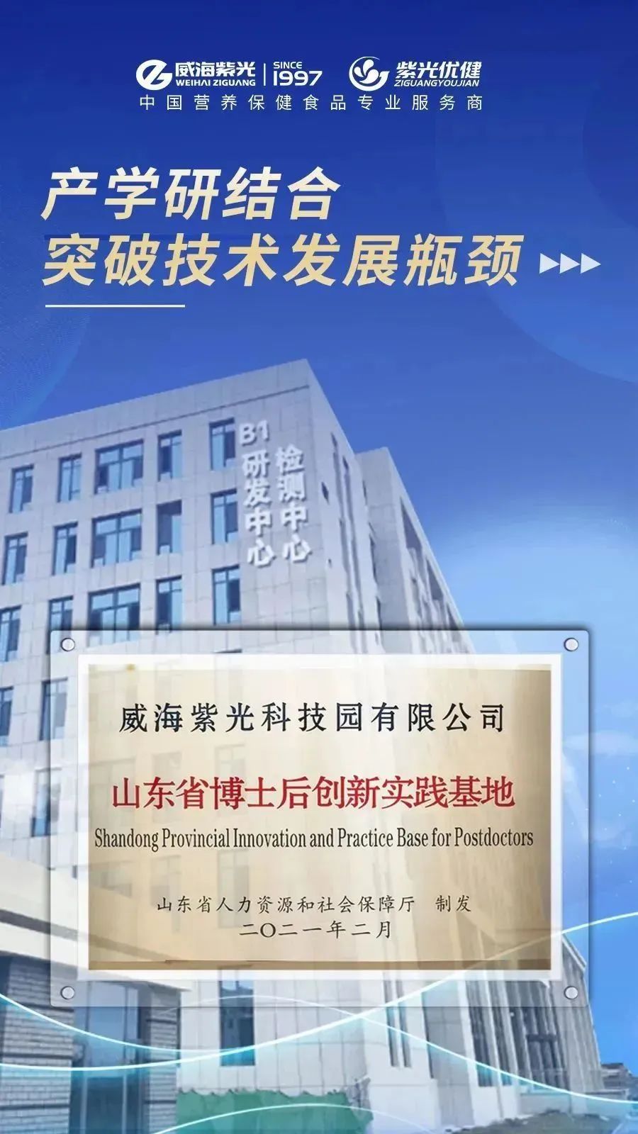 威海紫光积极推动产学研相结合的发展模式,2019年威海紫光设立博士后创新实践基地,在科技创新及产学研等方面不断发力,建立以博士生为学术带头的科研团队,与包括山东大学在内的多所高等学院签订战略合作协议,广纳贤才,深入开展技术创新开发,以增强产品创新力服务于大众健康事业。此次与8家科研院所及企业建立了紧密的合作关系,通过资源共享、优势互补,共同开展了富有创造力的科研项目,共同提出了基于海洋生物活性物质高效挖掘技术体系的创新方法。这种方法突破了传统海洋药物研究的瓶颈,它不仅提高了海洋生物活性物质的挖掘效率,更在保护海洋生态环境的前提下,为海洋资源的可持续开发利用提供了新的思路和方案,为解决海洋科学领域的关键问题提供了有力支持,更为大众健康和经济发展作出了重要贡献。